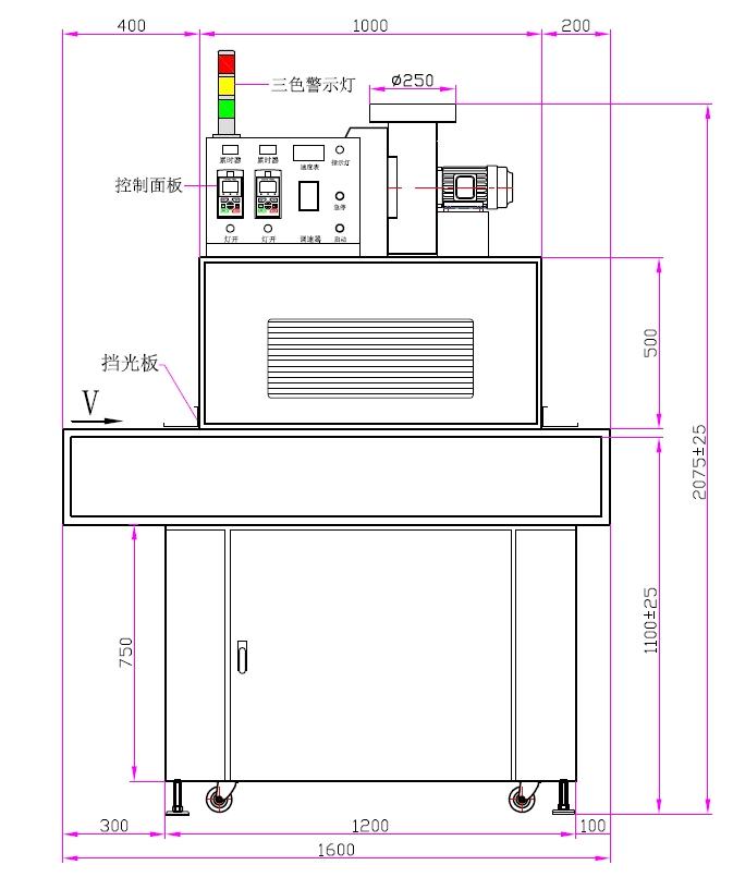 | 一、UV燈功率:6.0kw1支、8kw1支 | 二、UV燈總長:826mm、弧長:700mm |